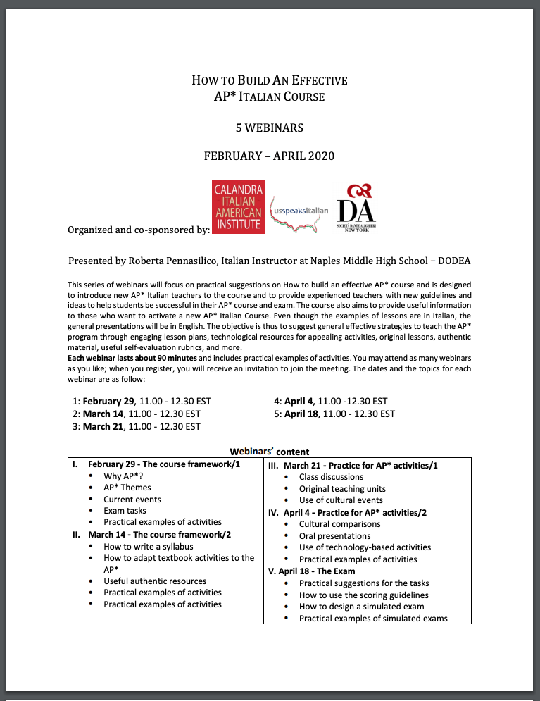 Effective AP Italian Course – Page 1 Posted on February 25, 2020February 25, 2020 by Italian Language Foundation ← Previous Next → Page 1